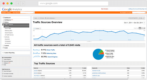 Each website we create has tracking code on it. You will know exactly how much traffic your site is getting, where that traffic is coming from, the search engines and keywords used to find your site, which pages were viewed, how long the viewer was on your site, etc.... Click on the image to see a website report.